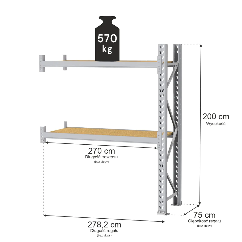 Regał magazynowy 2-półkowy MAGO HX H-200 cm G-75 cm L-278.2 cm moduł dostawny 570 kg