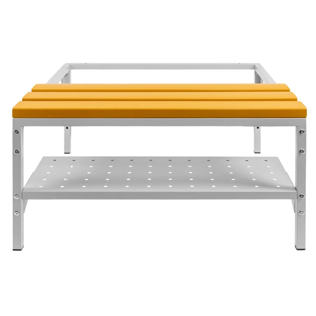 Zastosowanie: Podstawa z ławeczką i półką na buty idealnie sprawdzi się w szatniach pracowniczych, szkolnych, sportowych, a także w zakładach przemysłowych, halach produkcyjnych, siłowniach, klubach fitness i na basenach. Zwiększa komfort przebierania się, zapewnia miejsce na obuwie oraz ułatwia utrzymanie czystości pod szafką.