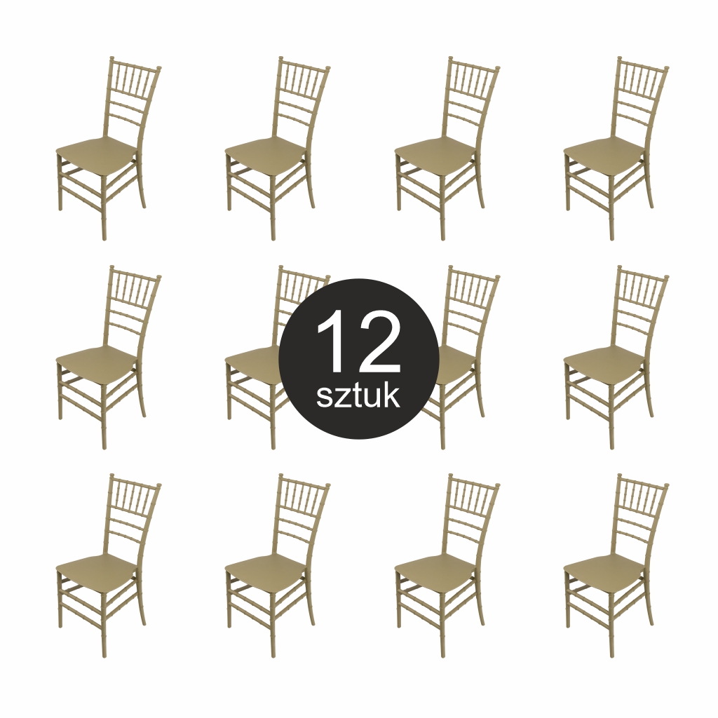 Krzesło bankietowe weselne FURVERO CHIAVARI PP poduszka ekoskóra kolor szampański-pistacjowy ZESTAW 12 szt.