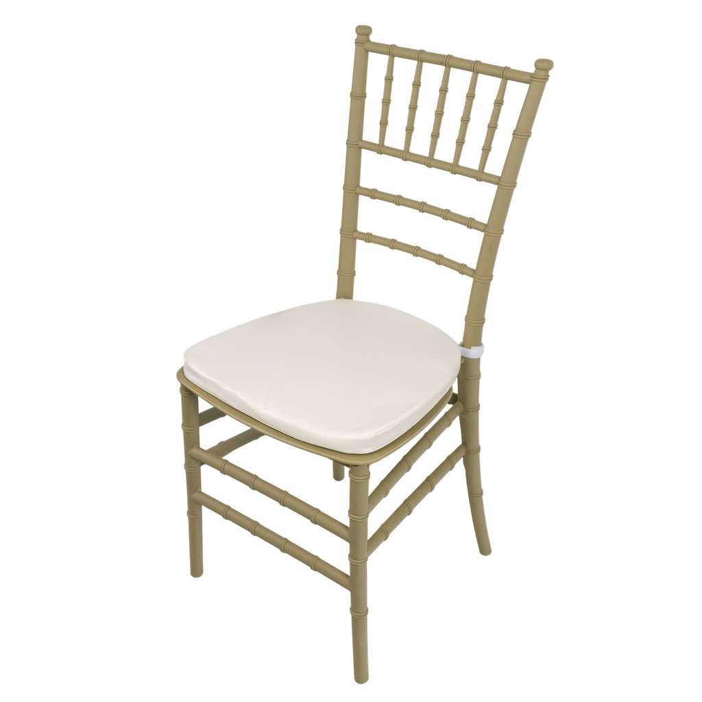 Krzesło bankietowe weselne FURVERO CHIAVARI PP poduszka ekoskóra kolor szampański-pistacjowy ZESTAW 24 szt.