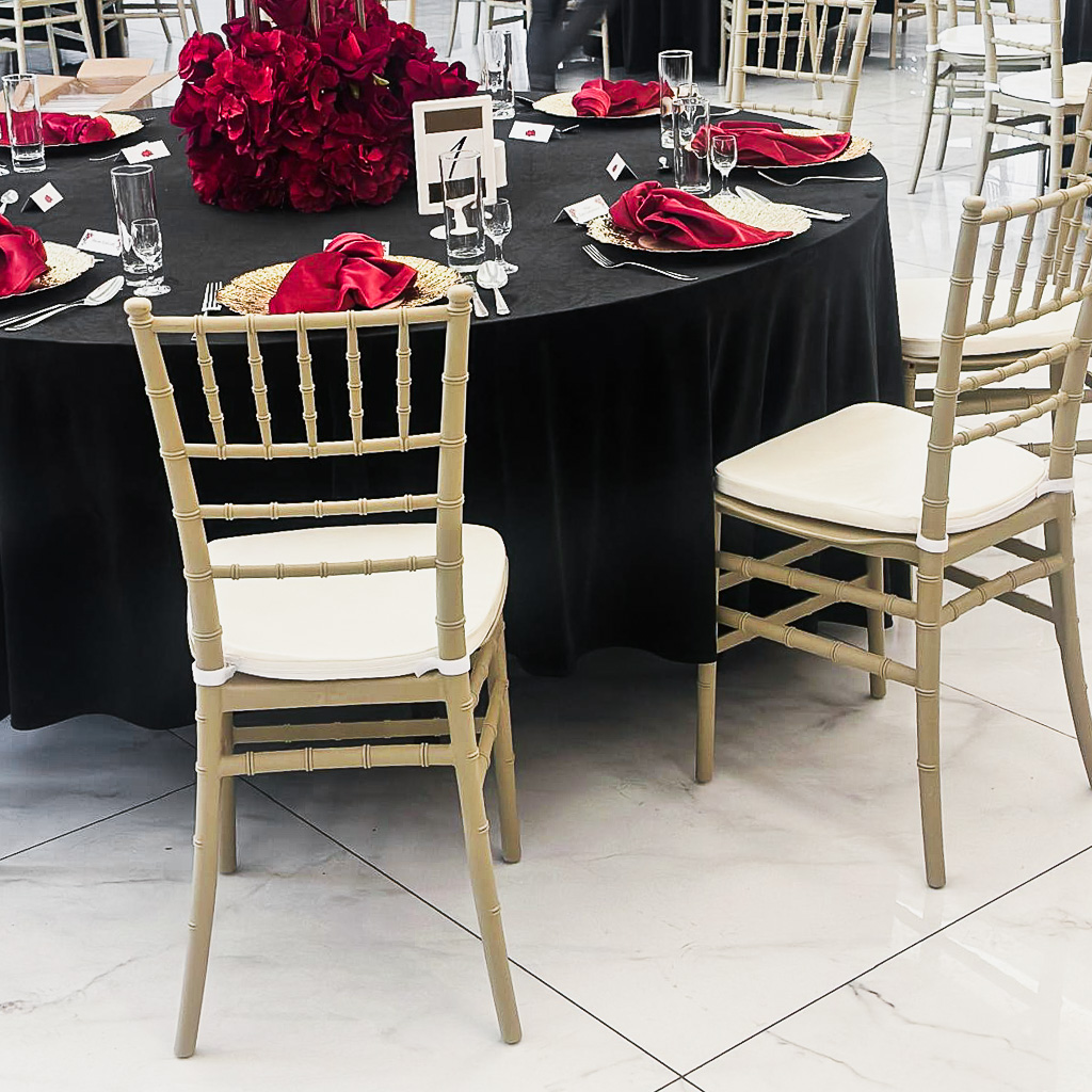 - Uniwersalny, elegancki styl – podkreśla charakter wnętrza i podnosi prestiż wydarzenia.