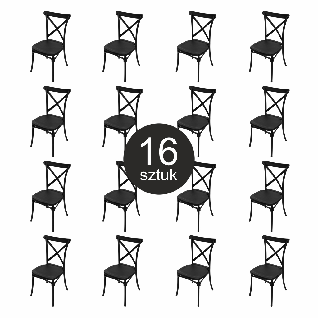Krzesło bankietowe industrialne FURVERO BOHO PP poduszka ekoskóra kolor czarny ZESTAW 16 szt N