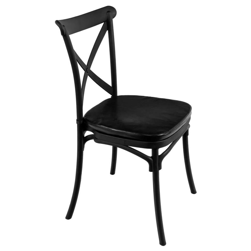 Krzesło bankietowe industrialne FURVERO BOHO PP poduszka ekoskóra kolor czarny ZESTAW 16 szt