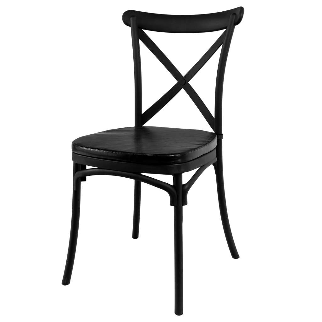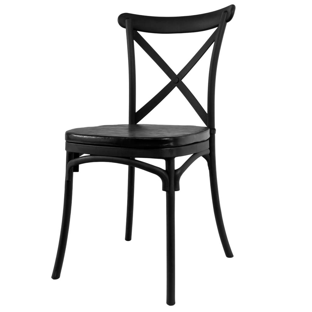Krzesło bankietowe industrialne FURVERO BOHO PP poduszka ekoskóra kolor czarny N