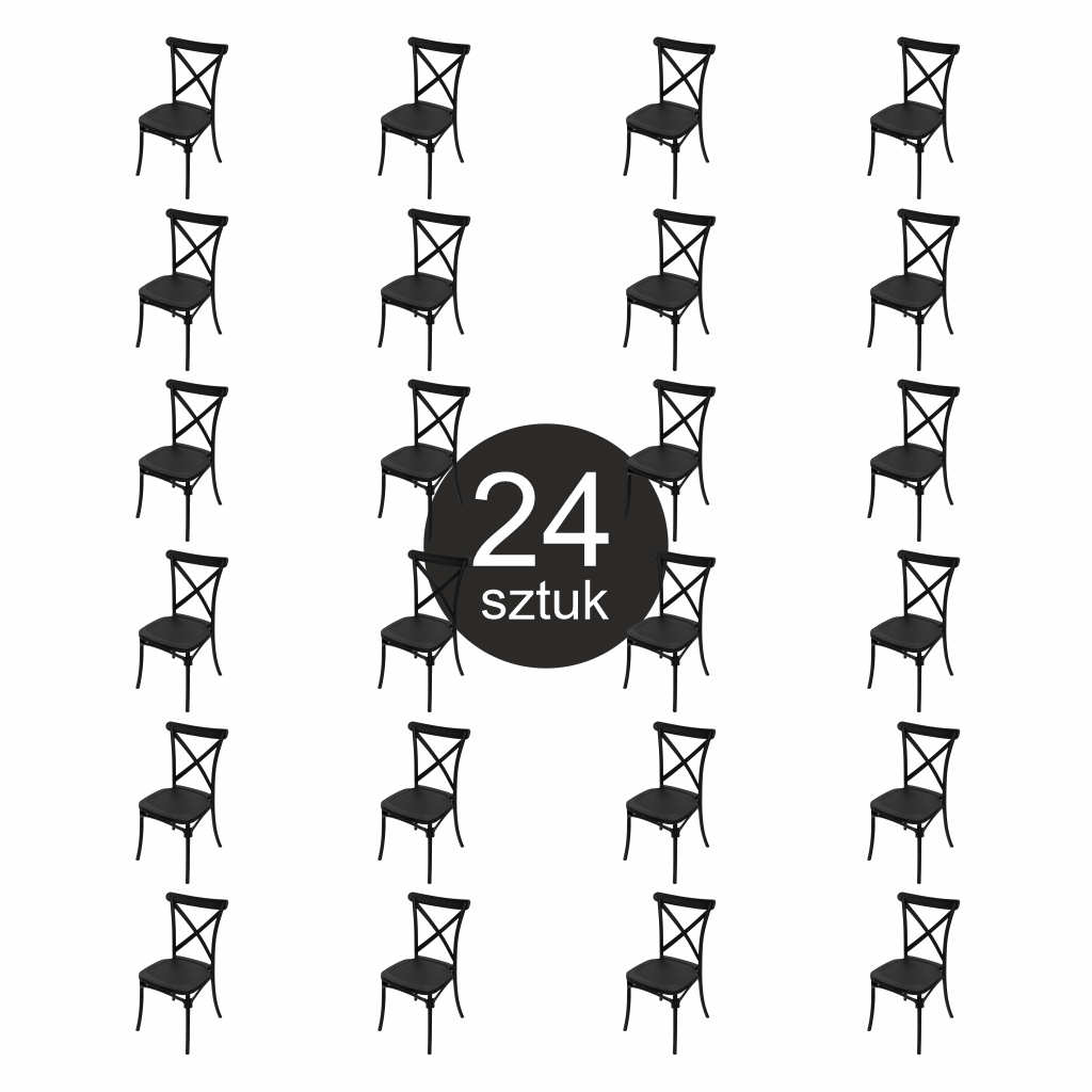Krzesło bankietowe industrialne FURVERO BOHO PP poduszka ekoskóra kolor czarny ZESTAW 24 szt