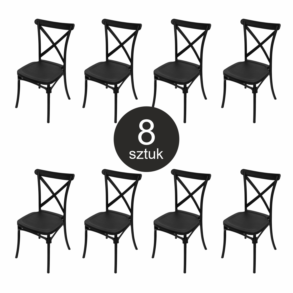 Krzesło bankietowe industrialne FURVERO BOHO PP poduszka ekoskóra kolor czarny ZESTAW 8 szt N