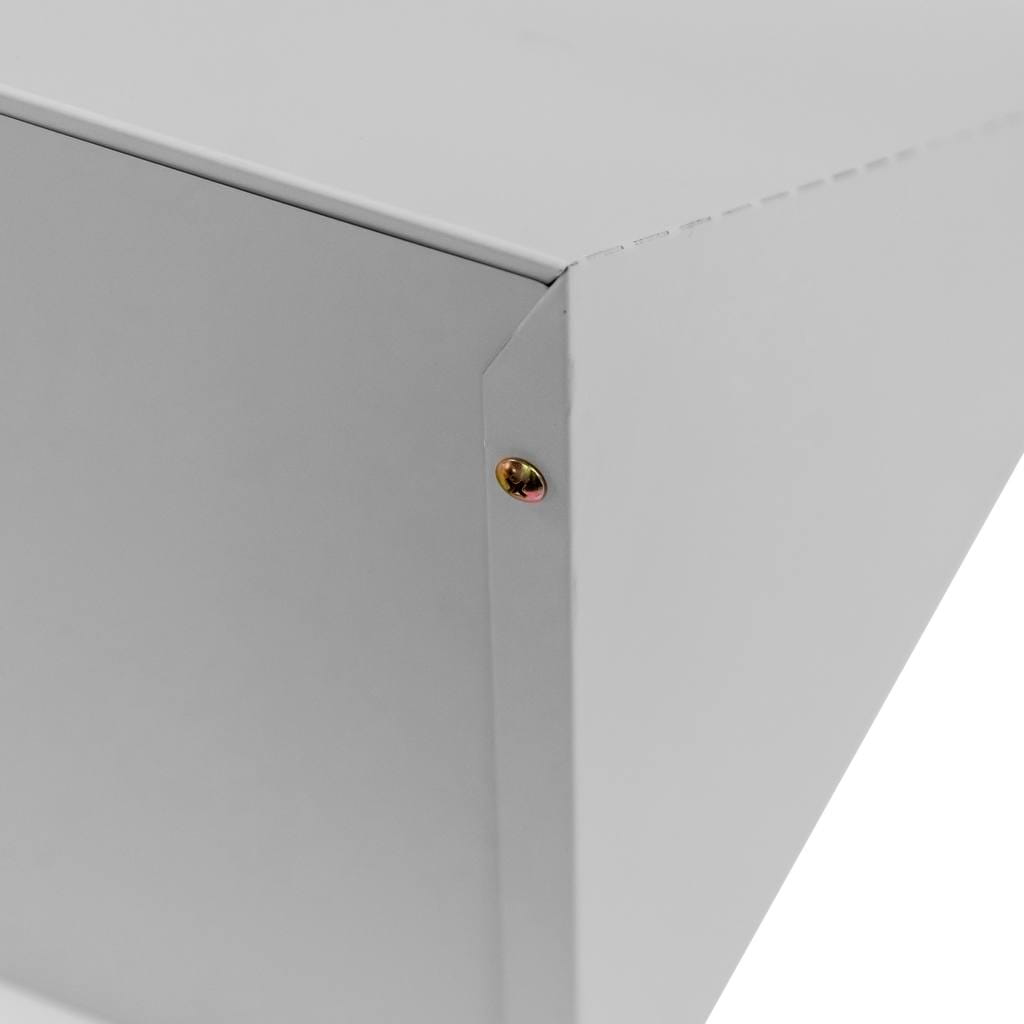 Daszek skośny do szafki BHP w szarym kolorze to praktyczne uzupełnienie naszych szafek ubraniowych. Został stworzony z myślą o łatwiejszym utrzymaniu czystości i schludnego wyglądu pomieszczeń socjalnych i zakładów przemysłowych. Solidna stal malowana proszkowo daje gwarancję odporności na korozję i uszkodzenia mechaniczne. Montaż jest prosty i szybki, dzięki skręcanej konstrukcji. Daszek skośny w rozmiarze 80x50x20 cm jest kompatybilny z szafką BHP o szerokości 80 cm.