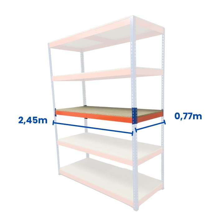 Półka kompletna do regałów Riveto 2450 x 772 mm, wraz z płytą wiórową 16mm