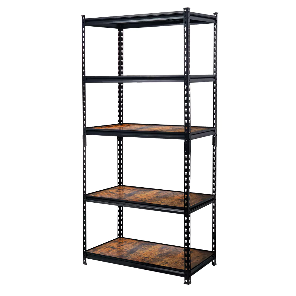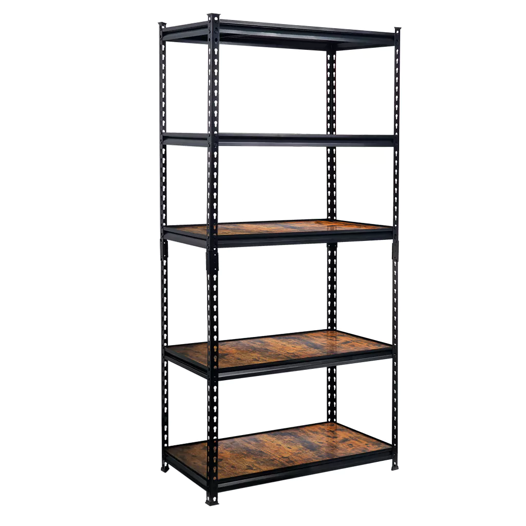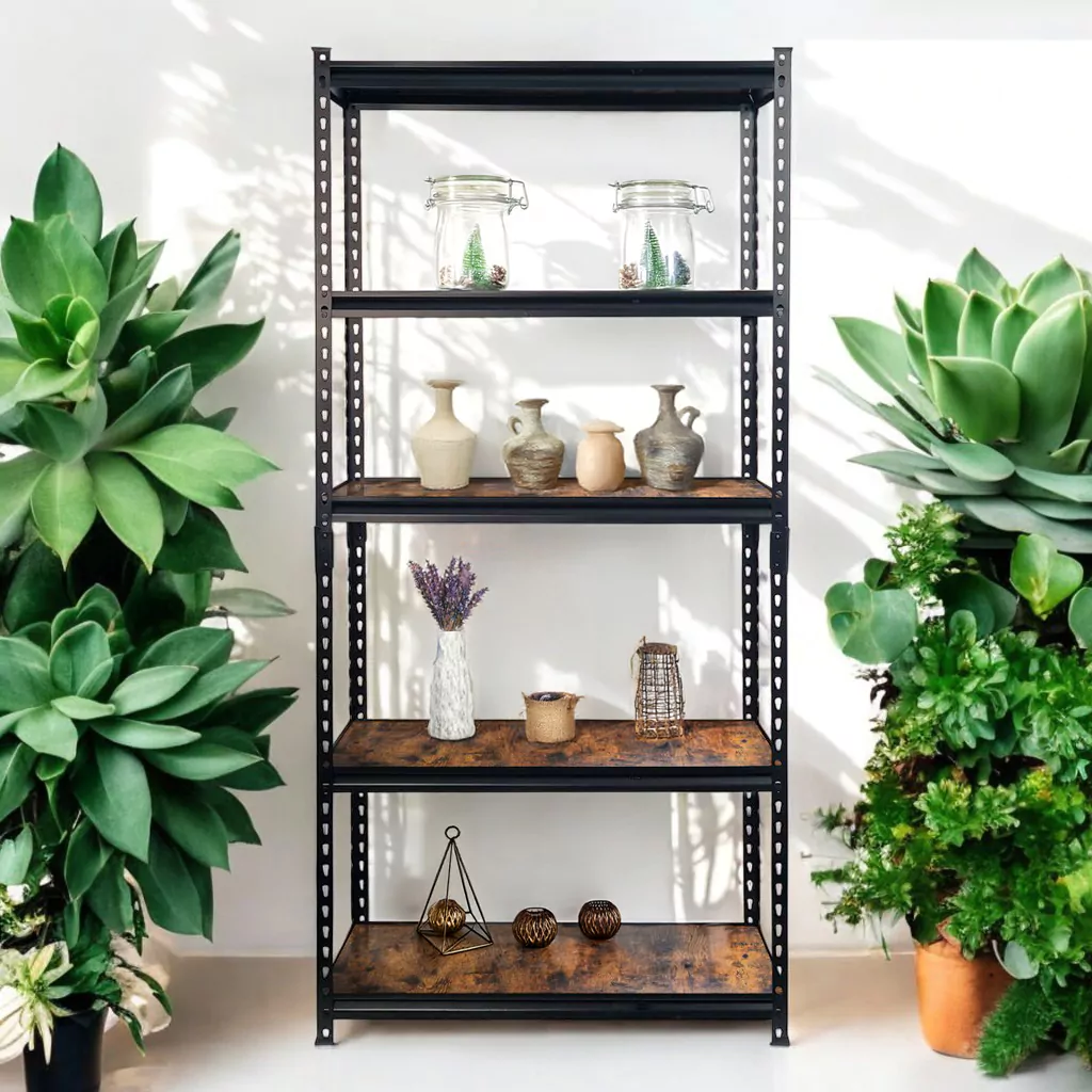 Regał magazynowy H-180 cm L-90 cm G-40 cm 5 półek z MDF 6,2 mm loftowy okleina drewno (275kg) czarny nit. N