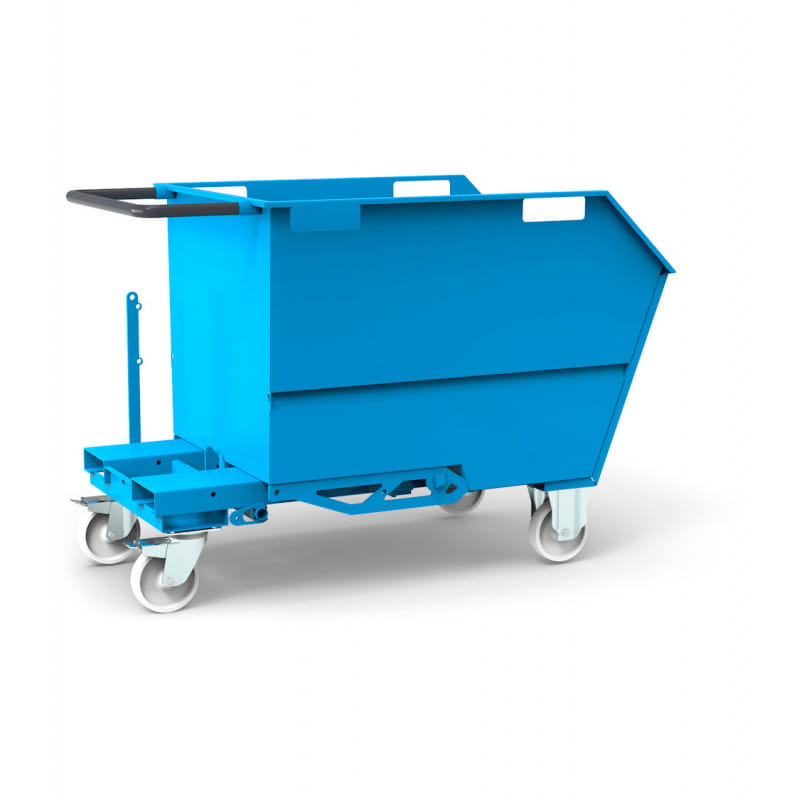 Najczęściej stosowany przy liniach produkcyjnych, gdzie kompletowane są odpady. Przy pomocy mechanizmu przechylającego szybko można przesypać je do zbiornika zbiorczego.