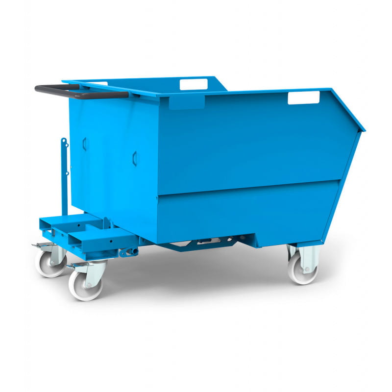 Najczęściej stosowany przy liniach produkcyjnych, gdzie kompletowane są odpady. Przy pomocy mechanizmu przechylającego szybko można przesypać je do zbiornika zbiorczego.