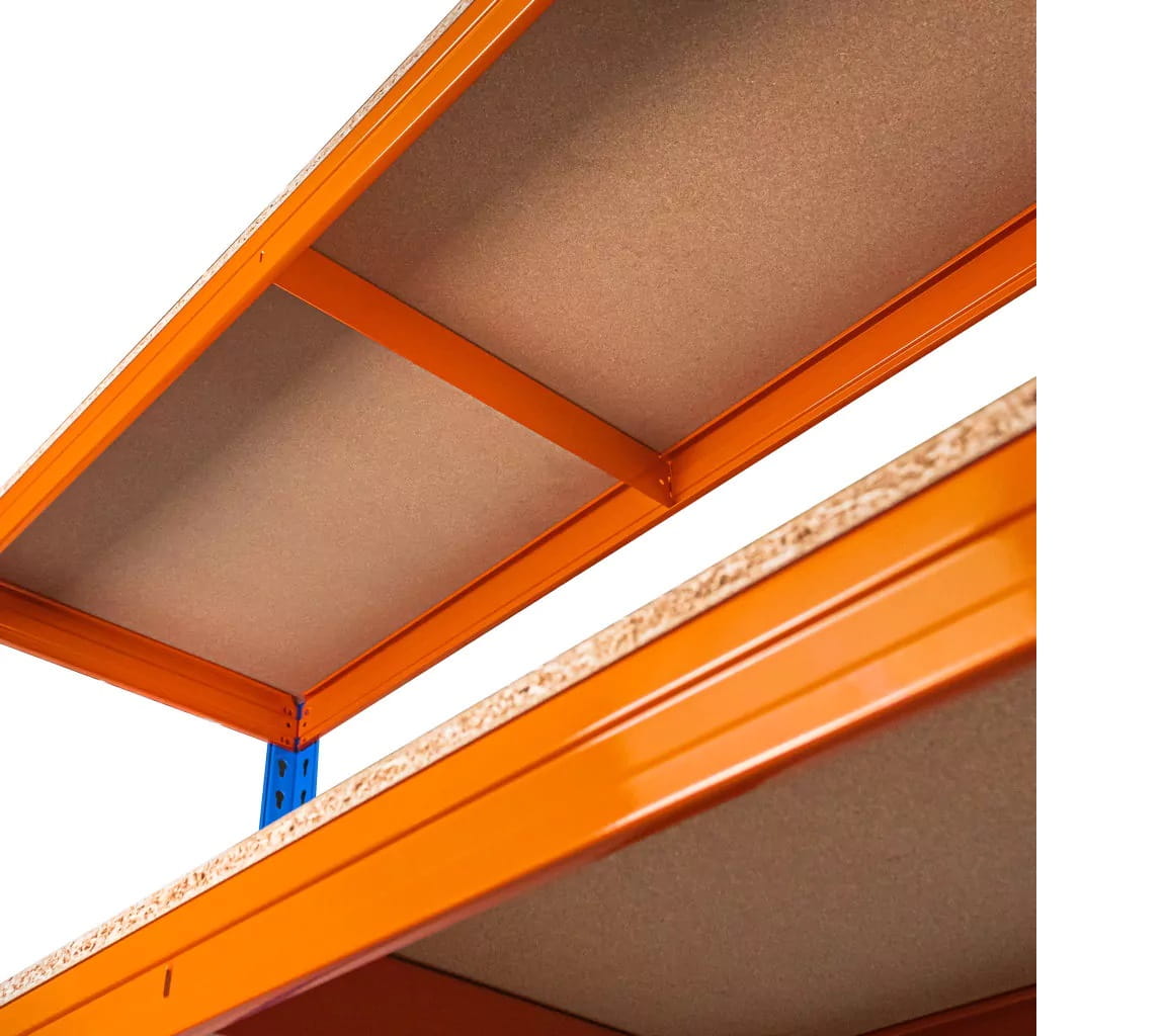 - Wsporniki (poprzeczki wzmacniające) pod półkami zwiększają nośność regału.