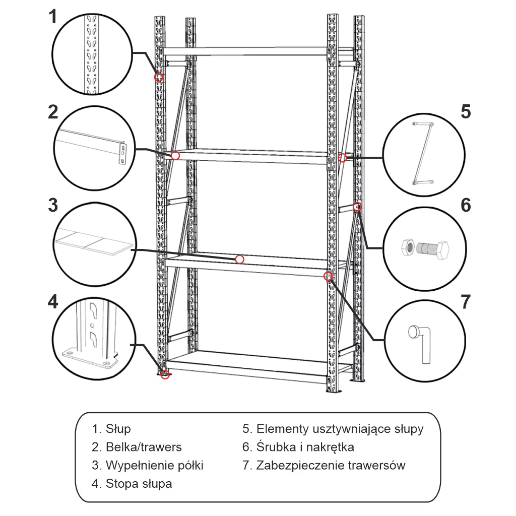 Regał magazynowy FORTIS zawiera: