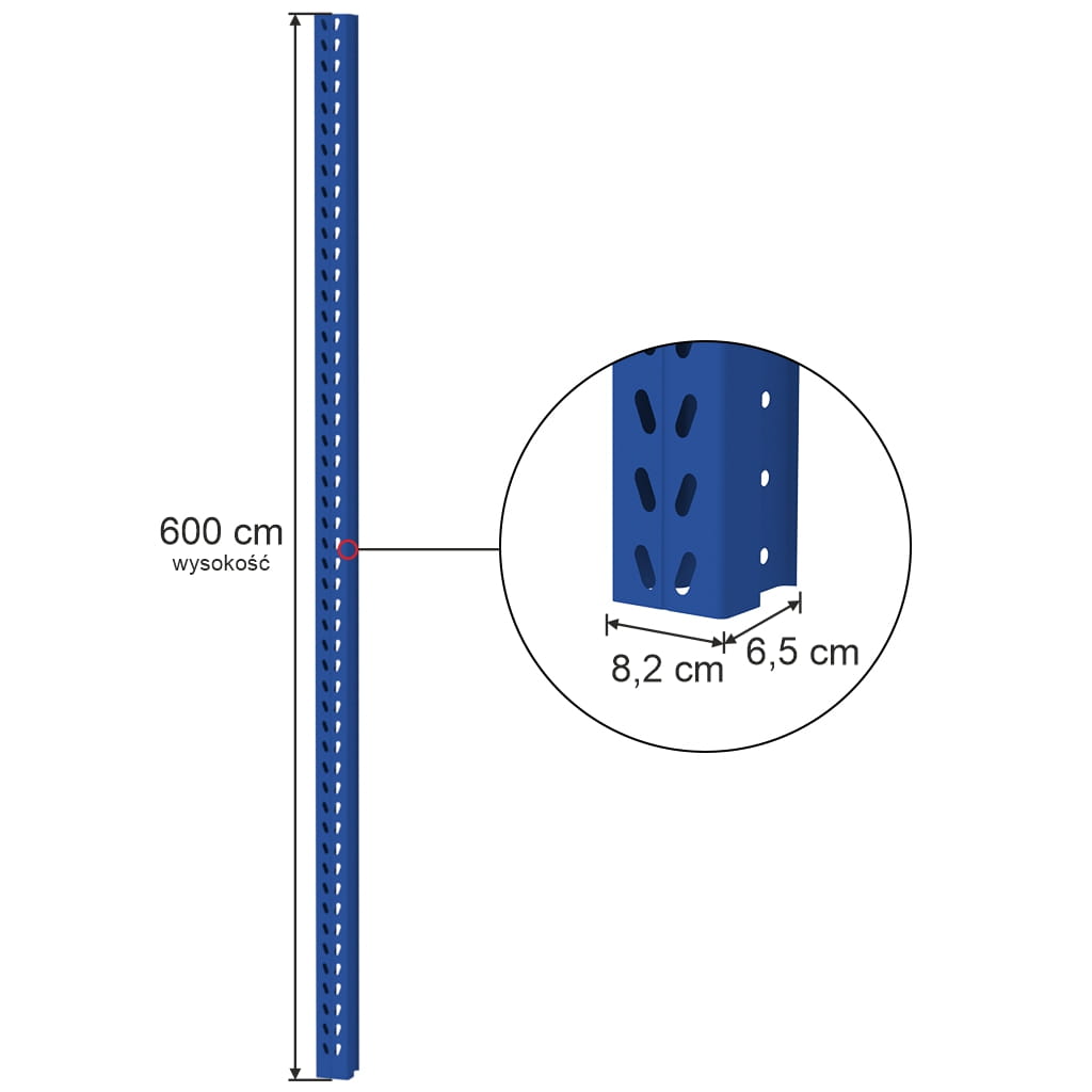 Słup MAGO HX H-600 cm jest niezbędnym elementem do zbudowania ramy regału, a jego solidna konstrukcja oraz wysokiej jakości materiały gwarantują stabilność i bezpieczeństwo przechowywanych produktów przez długi czas użytkowania.