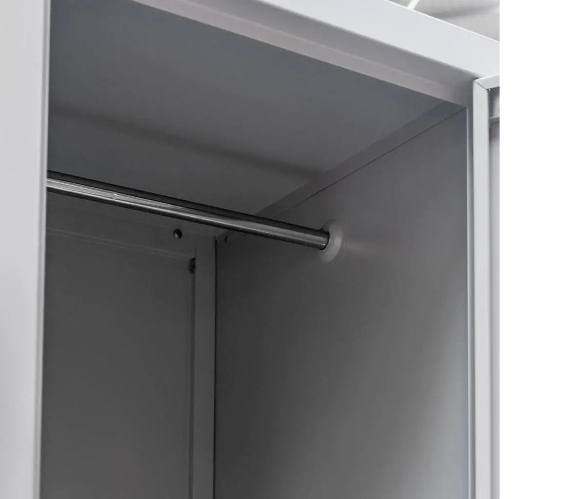 Praktyczne Rozwiązanie dla Pracownika: Szafka ubraniowa BHP to niezbędny element wyposażenia dla każdego pracownika. Wykonana z wysokiej jakości blachy stalowej malowanej proszkowo, gwarantuje trwałość oraz odporność na uszkodzenia i korozję. Dwie oddzielne komory z drążkami z haczykami umożliwiają przechowywanie ubrań, rzeczy osobistych, obuwia oraz odzieży roboczej.