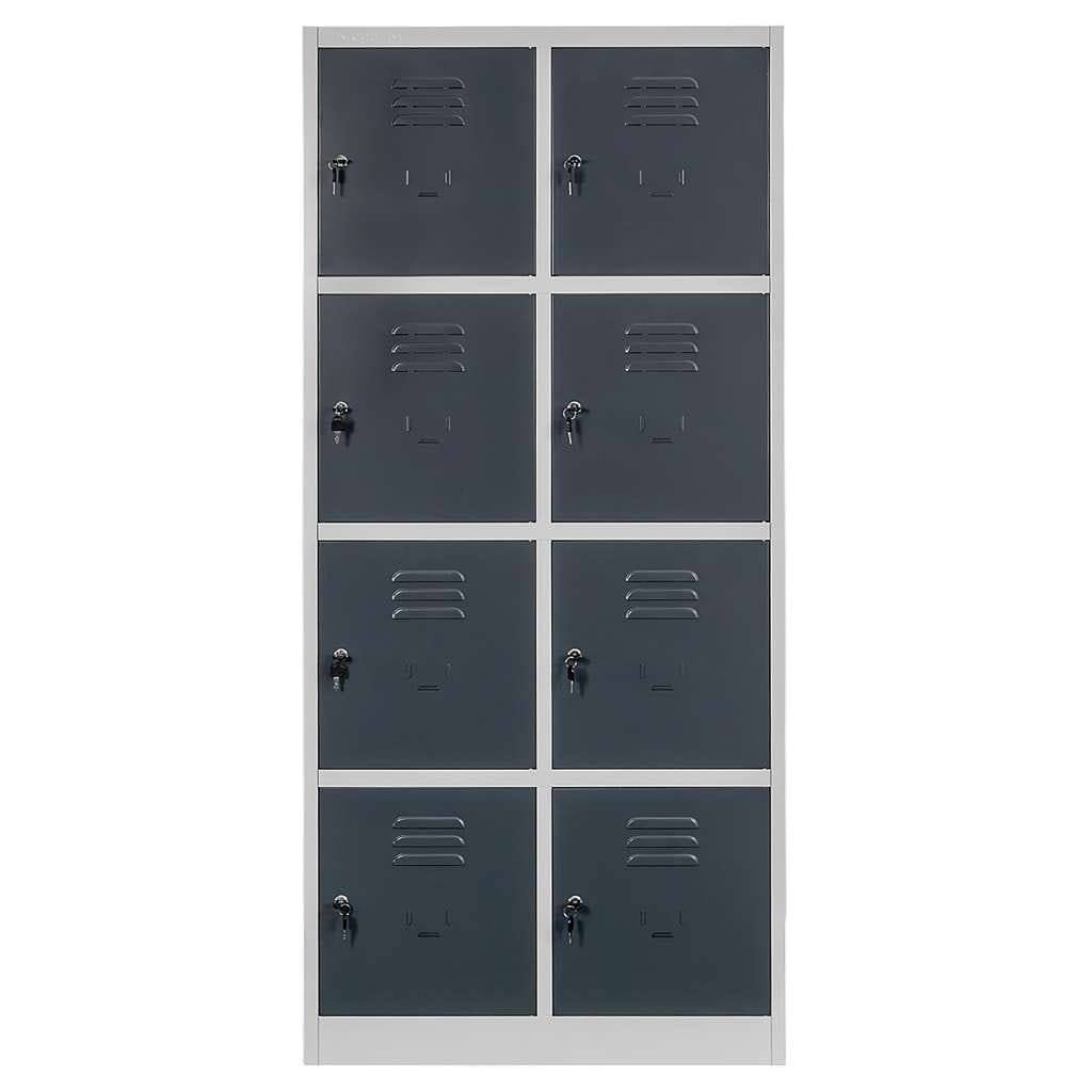 Szafka skrytkowa BHP J-80/8 – 8-drzwiowa, szaro-grafitowa