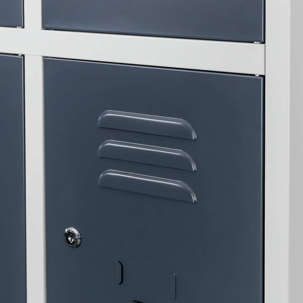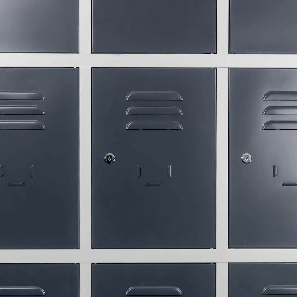 Szafka skrytkowa BHP J-90/12 – 12-drzwiowa, szara z grafitowym frontem