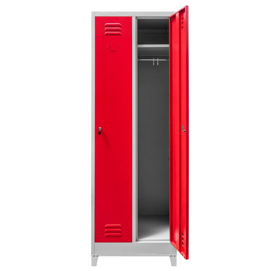 Szafka ubraniowa BHP J-60 2-drzwiowa na podstawie z nóżkami 60×50×190 cm – szary korpus, czerwony front