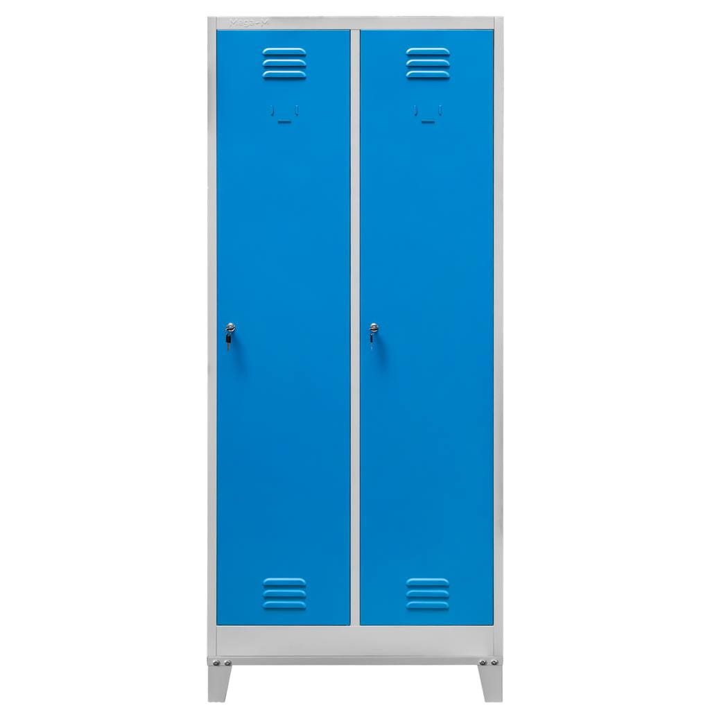Szafka ubraniowa BHP J-80 2-drzwiowa z przegrodami na podstawie z nóżkami 80×50×190 cm – niebieski front
