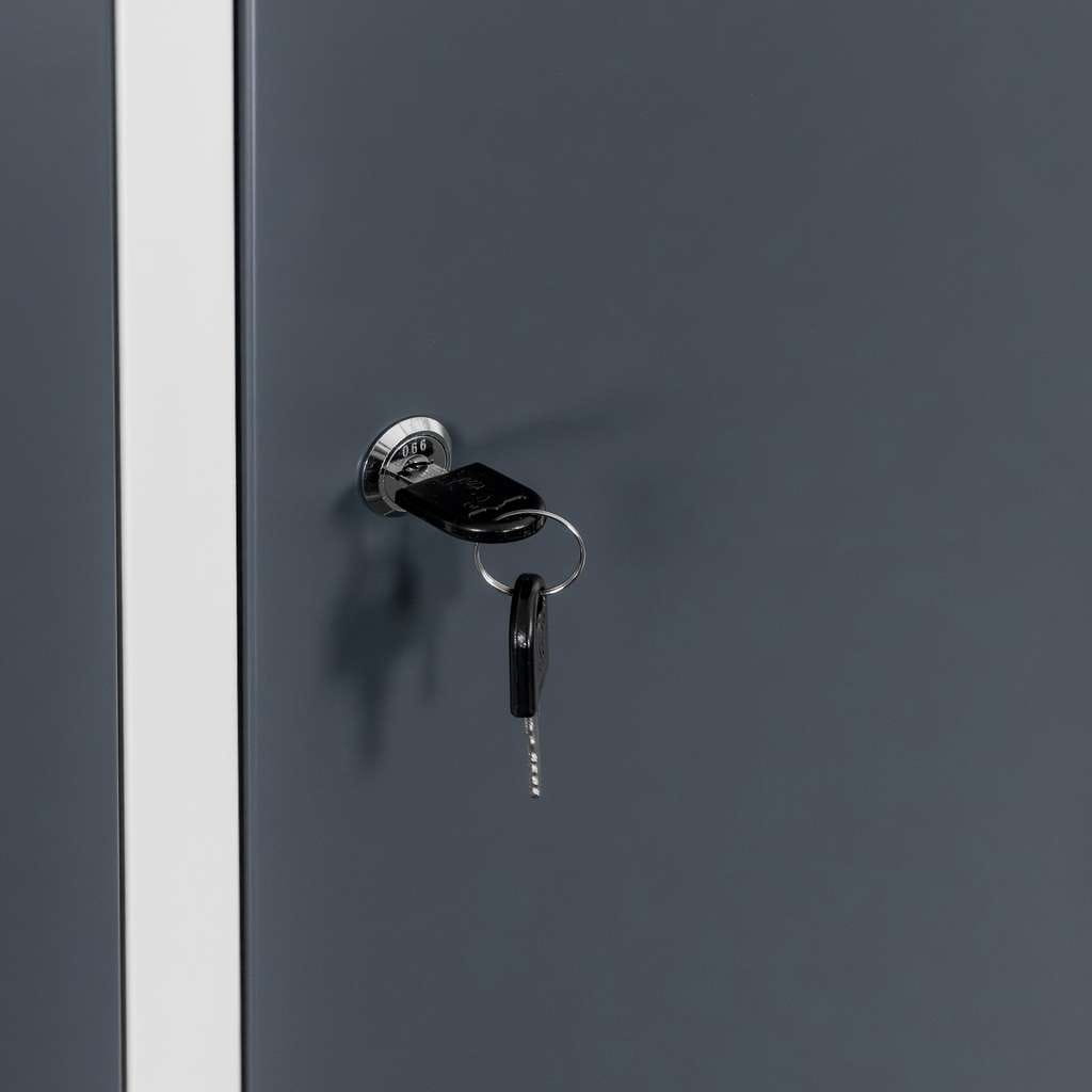 Korpus wykonany został z wytrzymałej blachy stalowej malowanej proszkowo na kolor szary, natomiast grafitowe fronty nadają meblowi nowoczesny i profesjonalny wygląd. Konstrukcja charakteryzuje się wysoką odpornością na uszkodzenia mechaniczne oraz intensywną, codzienną eksploatację.